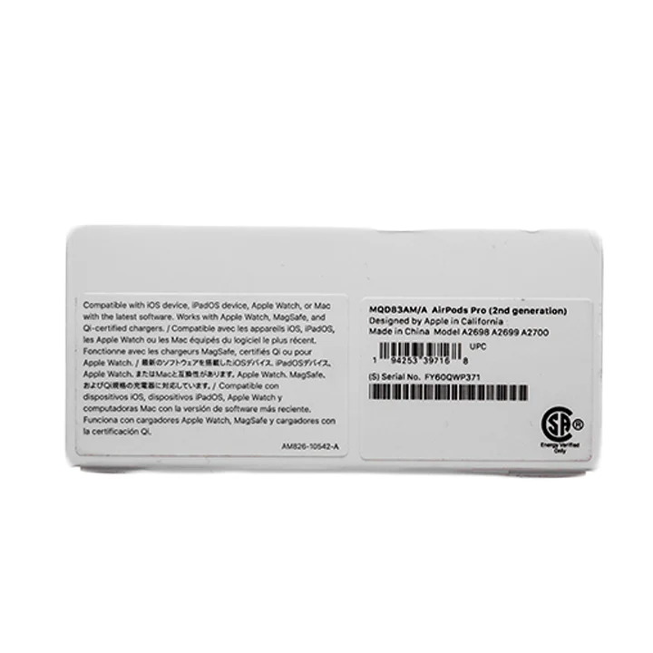 Apple AirPods Pro ( 2nd Generation ) with Magsafe Charging case. Will be shipped with standard-sized (Medium) tips, in generic packaging. Cables and additional accessories not included.